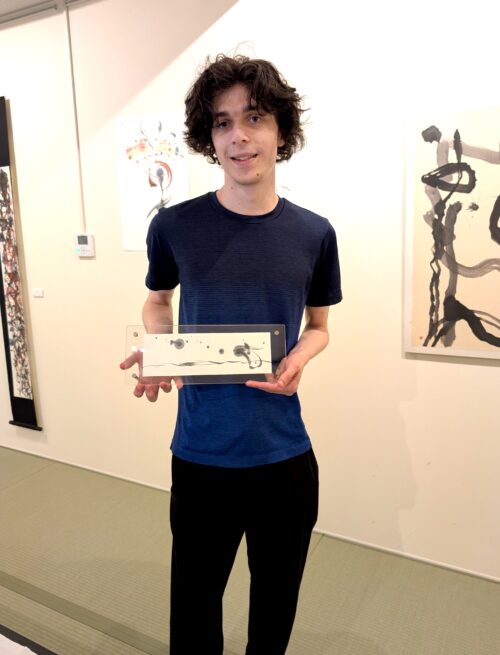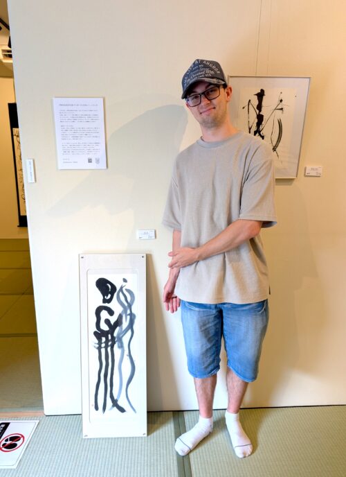 『男女』の作品と一緒に映っている彼は、大学で日本史を学んだのだそうで、芳名帳に記帳した自分の名前の下に、何も見ずに「覇風」と書き添えたのには驚きました。「覇」なんて漢字は、日本人でも書けない人が多いのではないでしょうか。
