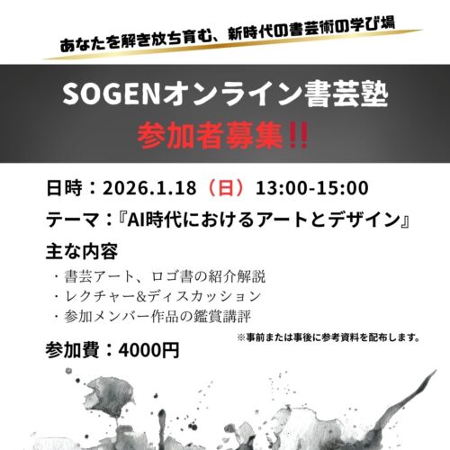 以下、1.18(日)開催予定のオンライン書芸塾のご案内です。