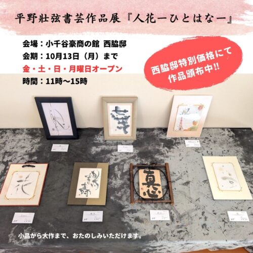 西脇邸で開催中の平野壯弦書芸作品展『人花ーひとはなー』より、小作品をご紹介させていただきます。
