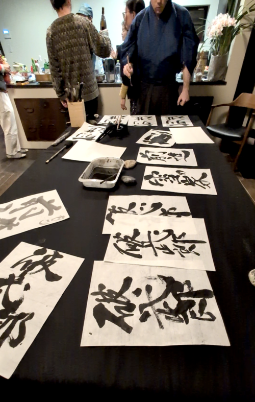せっかくの機会なので、みんなで一杯やりながら書を書いてあそんでもらいました🖌️♬